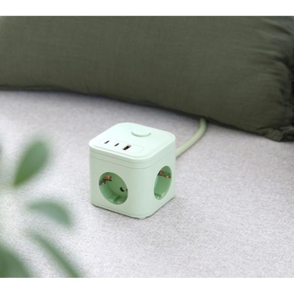 [P] 마카롱 3구 USB 고용량 큐브 멀티탭_그리너리