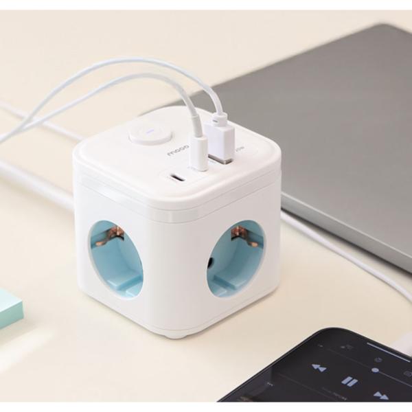 [P] 마카롱 3구 USB 고용량 큐브 멀티탭_스카이블루